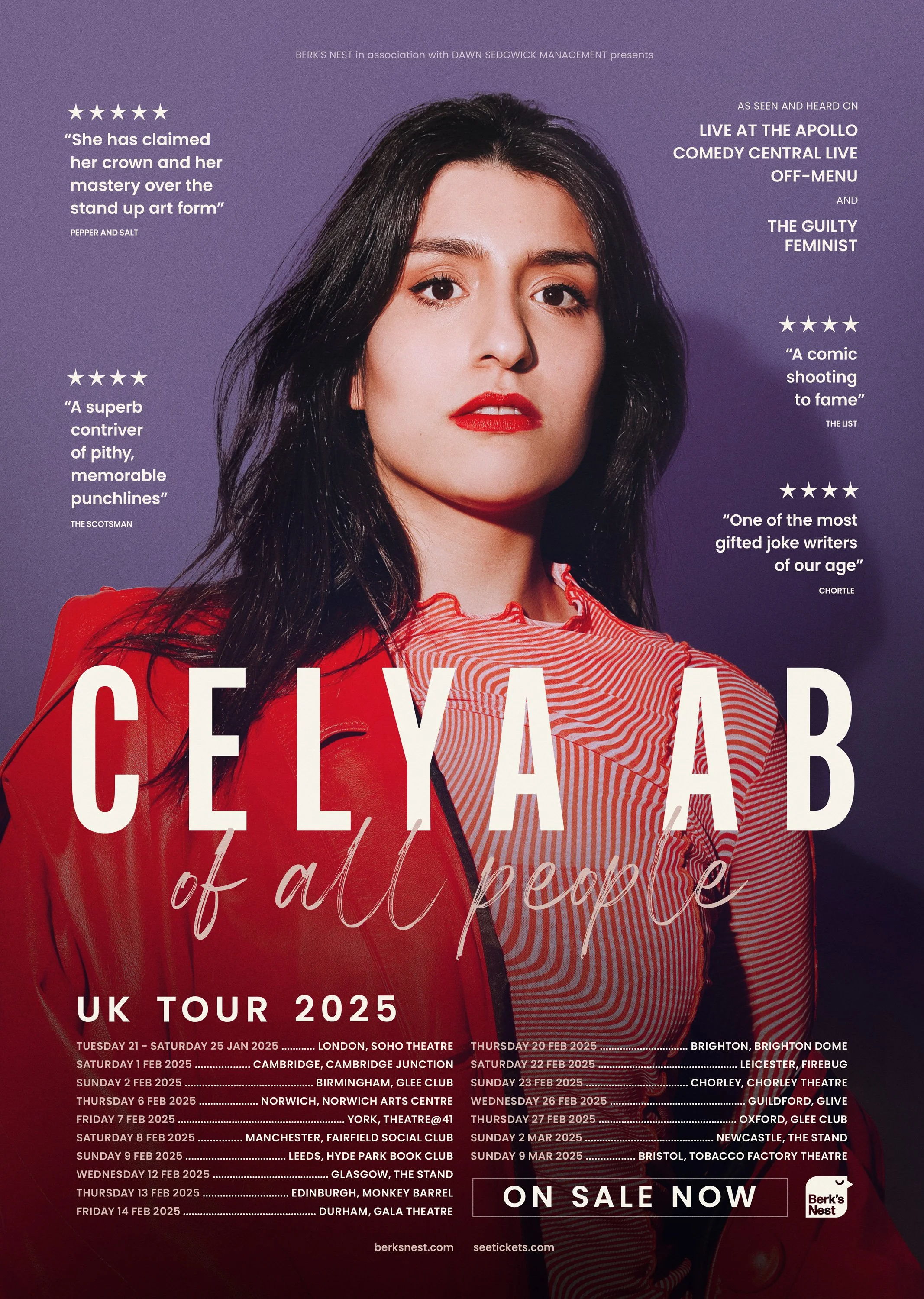 Original design and wider publicity campaign materials for 2024 Edinburgh Fringe show by Celya AB, for Show and Tell Productions.